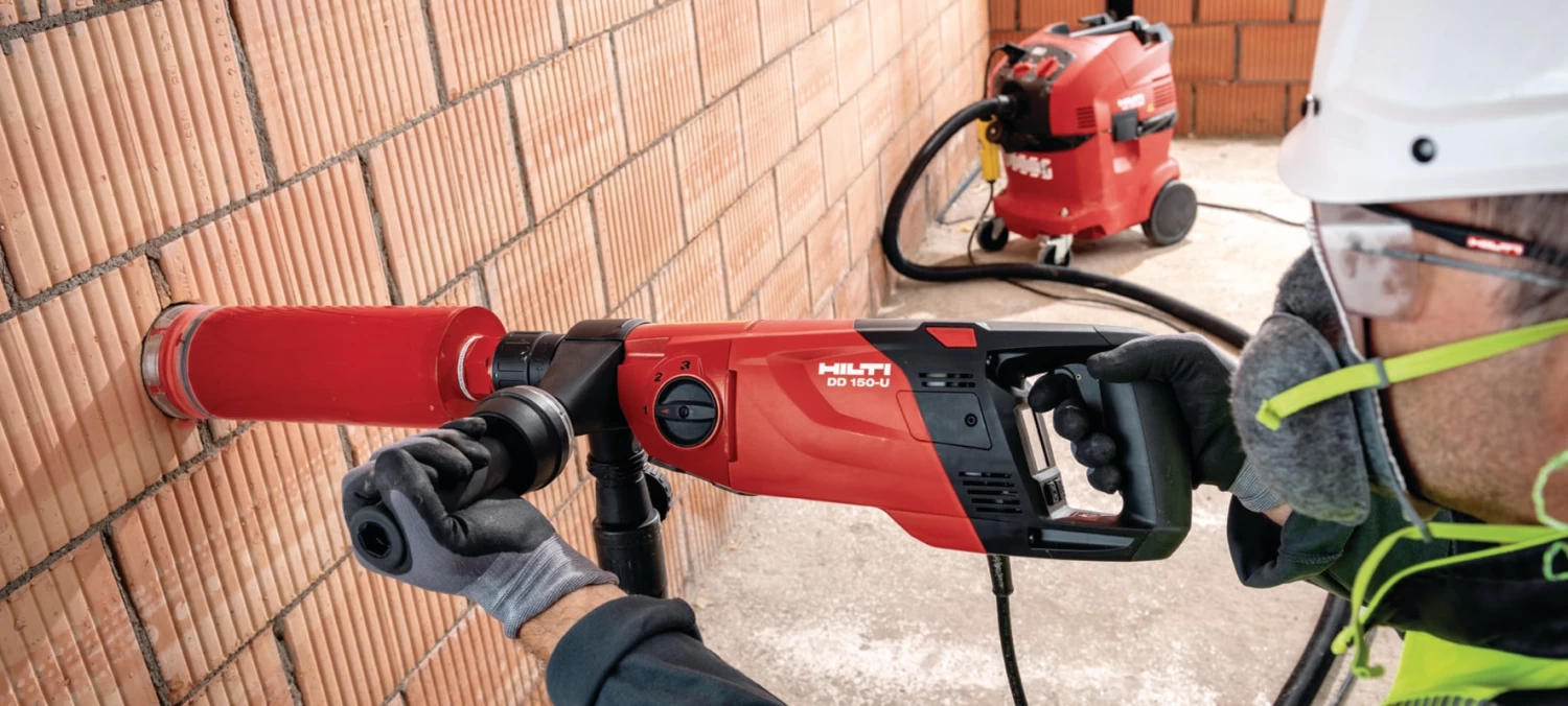 Carottage à main à sec dans la maçonnerie pour le passage de tuyaux dans des installations de plomberie, chauffage et climatisation et pour l’installation de cheminées et de poêles
