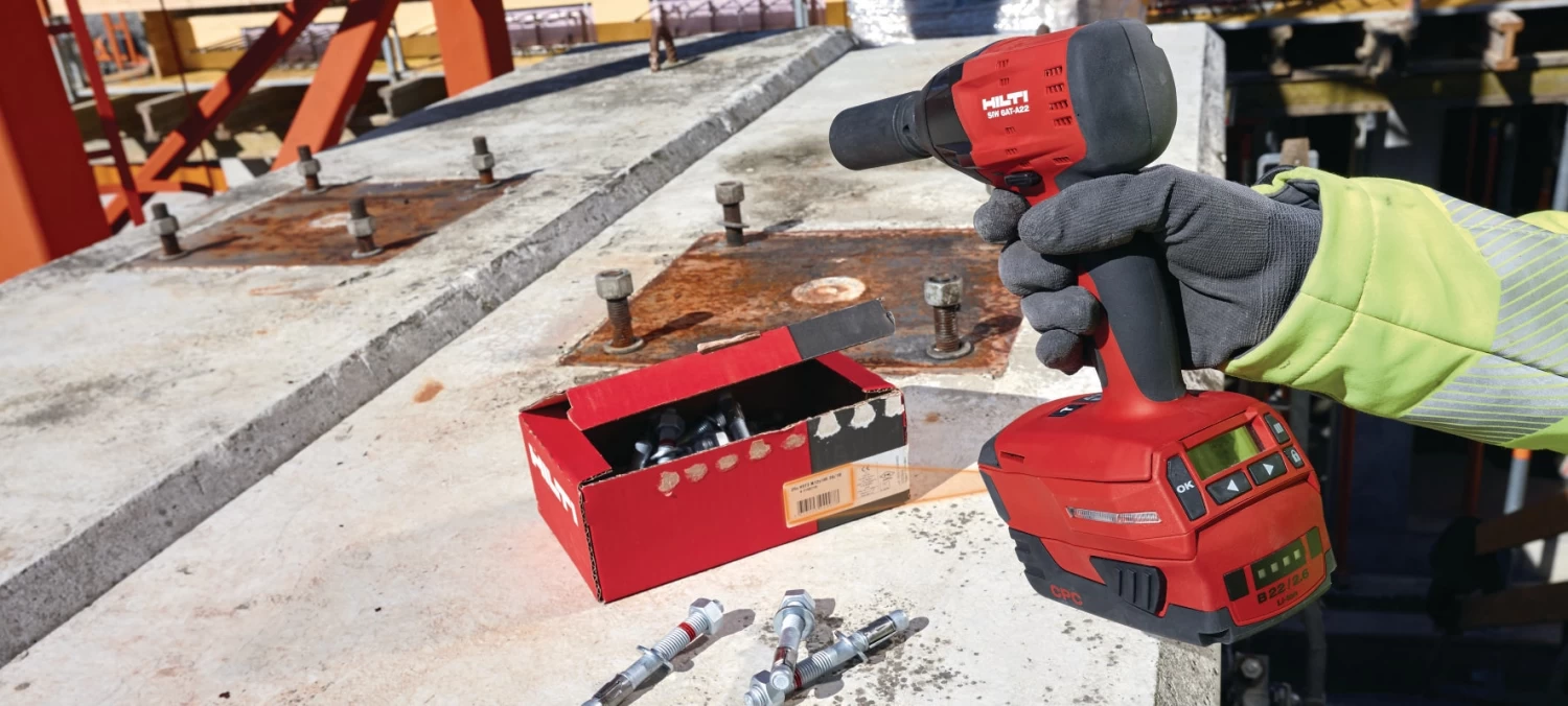 Premier système de réglage de couple compatible avec une boulonneuse à choc (SIW 6AT-A22 et SI-AT-A2) sur le marché pour l’installation de goujons d’ancrage Hilti, la fixation de rails inserts, l’assemblage de systèmes de supportage modulaires ou le boulonnage métal sur métal