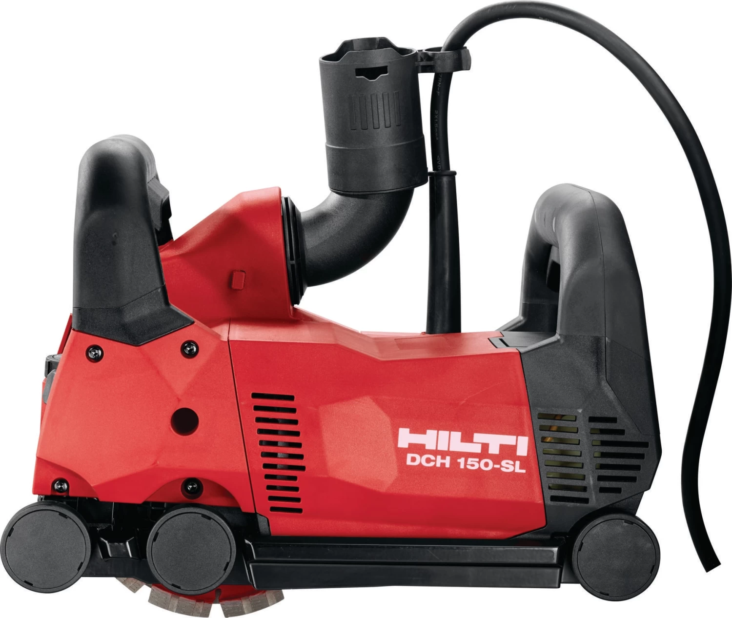 Rainurage jusqu’à 50 mm de profondeur et 50 mm de largeur sur tous les matériaux communément utilisés, tels que le béton, le silex, le calcaire, etc. (pour une utilisation avec des disques de rainurage de 150 mm)